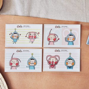 正方形貼紙套裝: 附有四款正方形光面貼紙。