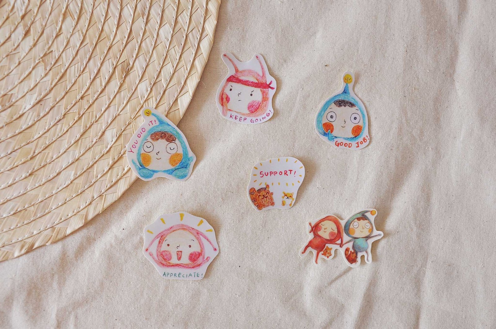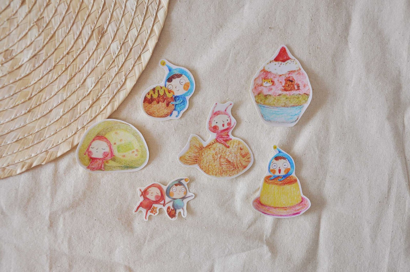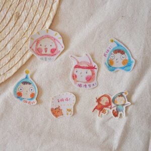 英文/中文打氣/日式小吃磨沙貼紙包: 防水磨沙貼紙,附有6張貼紙。